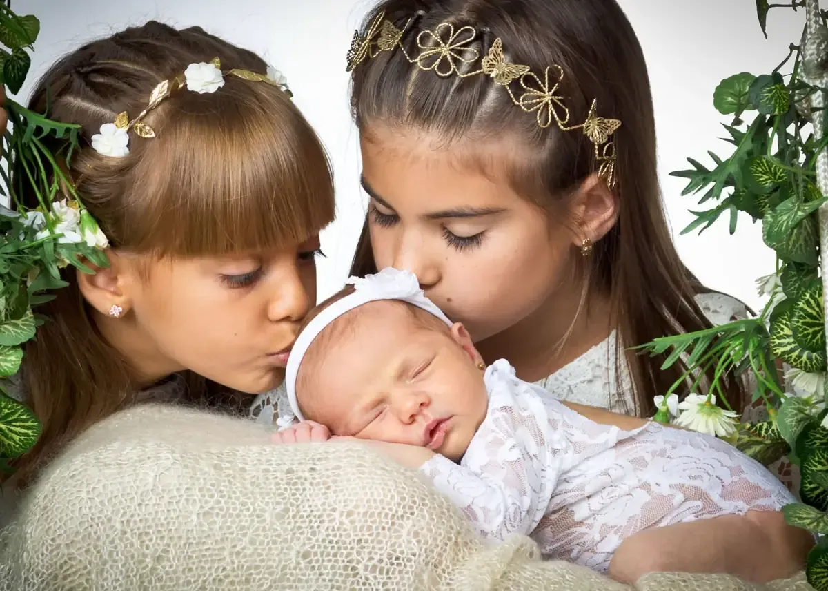 Incluir hermanos, padres y familiares es otra manera de crear un recuerdo perfecto para toda la vida, la conexión que existe entre los hermanos gemelos se refleja en los retratos, naturalmente se abrazan o se toman de la mano al igual que en el vientre materno.
